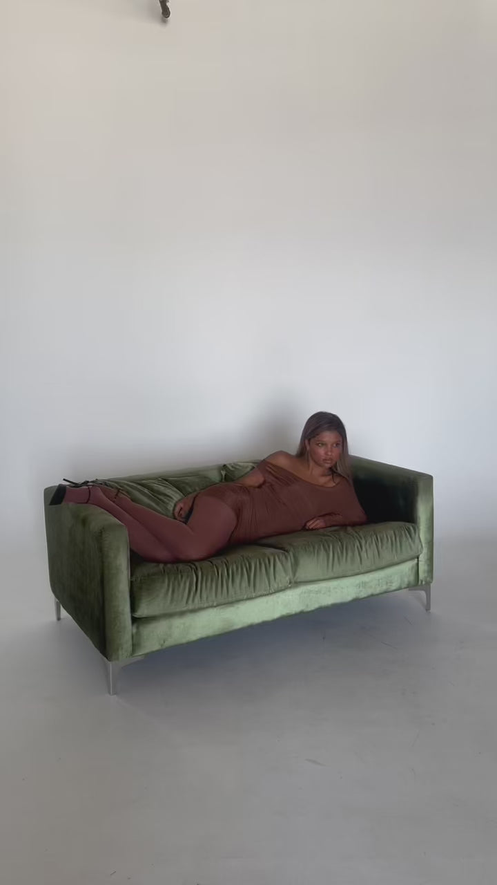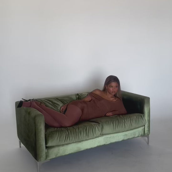 One-shoulder mini dress with a soft ribbed texture, designed in a stretch rayon blend for a fitted, flattering silhouette and a slightly sheer, breathable feel.