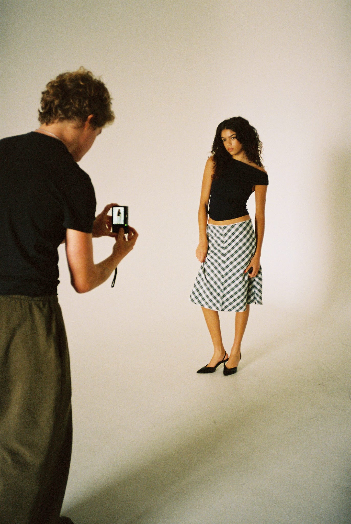 One-shoulder stretch cotton top with subtle ruching and a form-fitting silhouette.